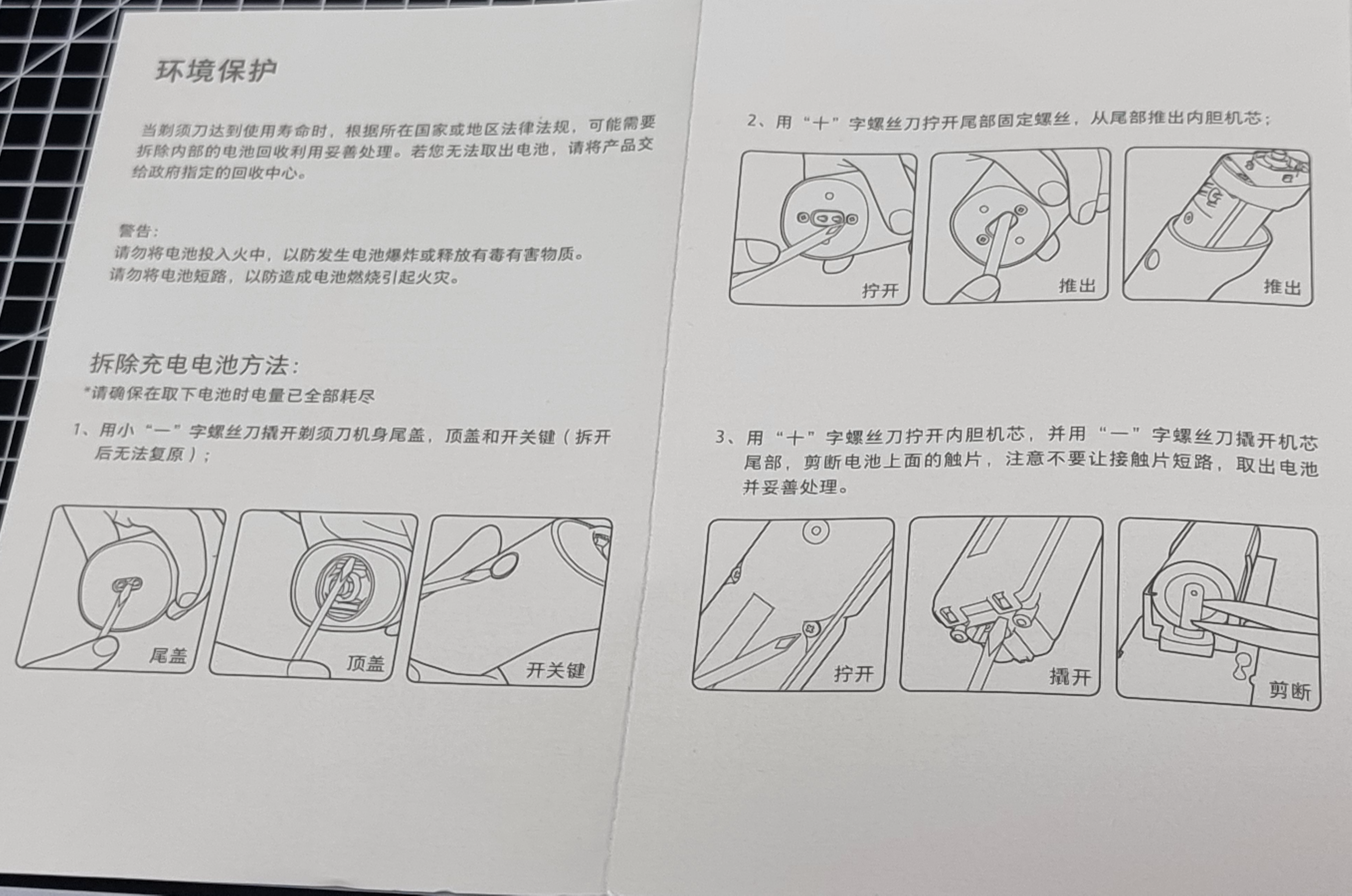 면도기 구성품에 들어있던 폐기 시 배터리 분리에 관한 설명 같은데요