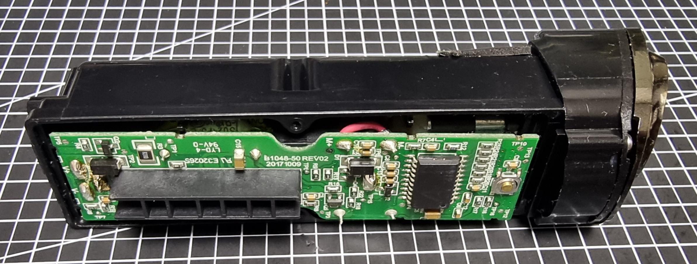 3. 나사 두 개를 제거하고 충전부를 밀어 케이스에서 부품을 밀어냅니다