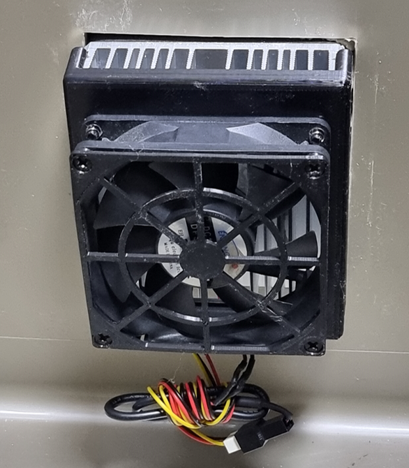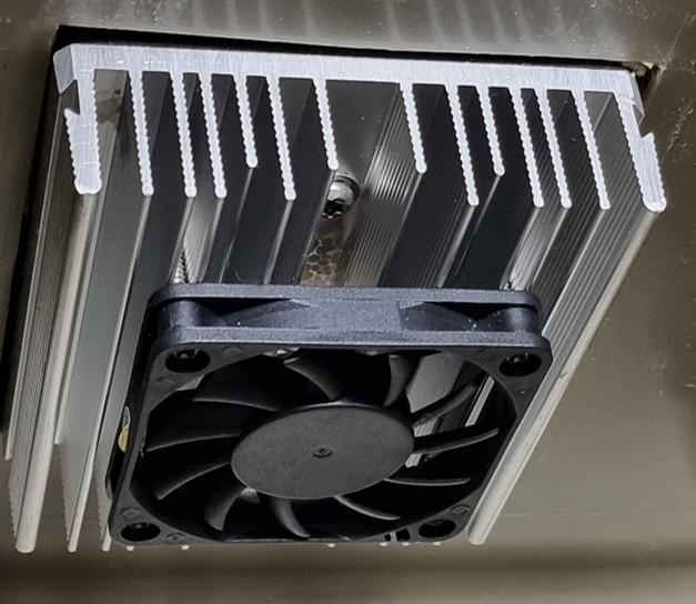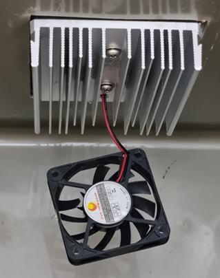팰티어 소자를 중심으로 위아래에 방열판이 있고 각각의 방열판에는 팬이 달려있습니다