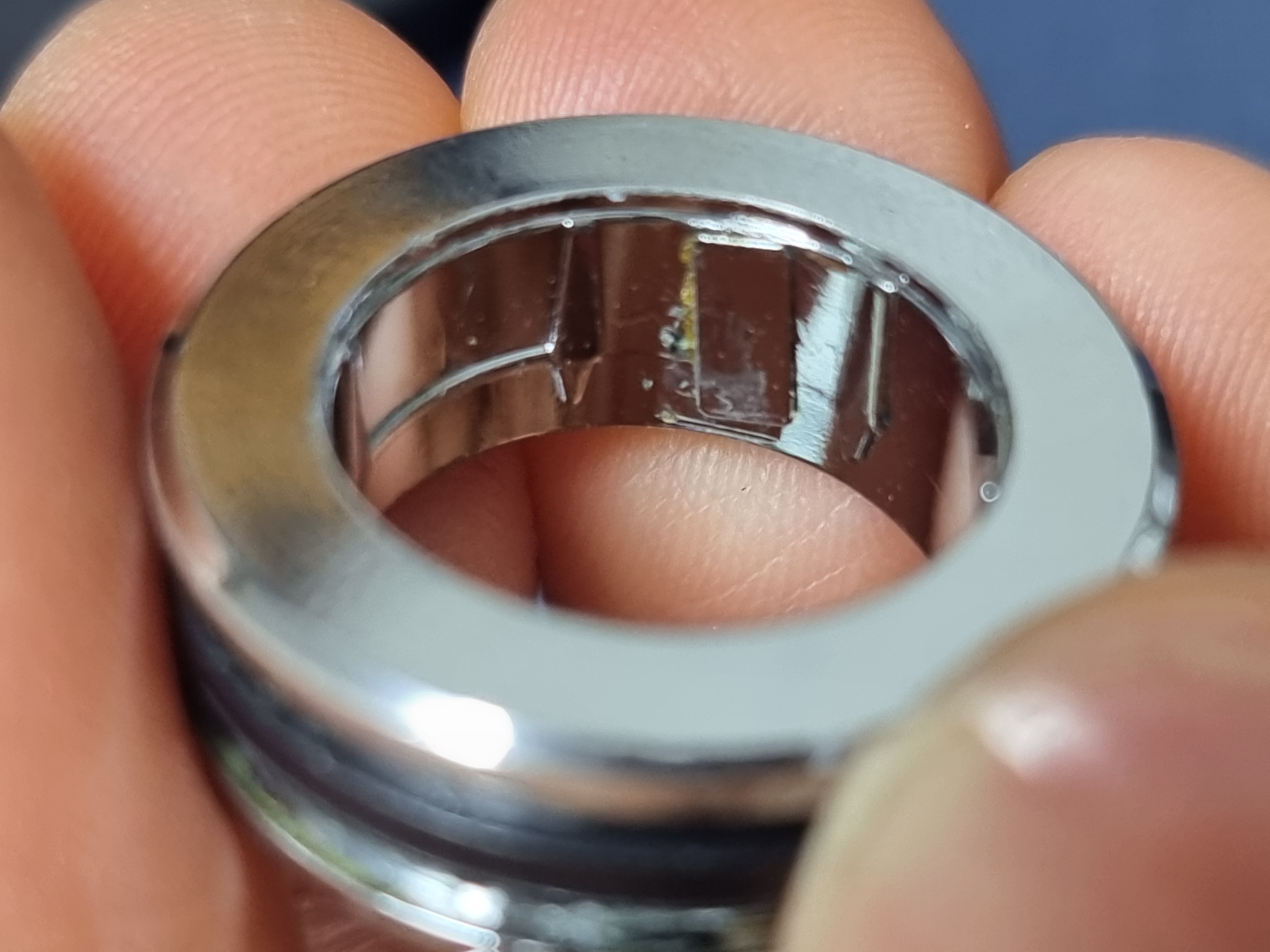 사진을 크게 보면 은색 부분 바로아랫부분이 살짝 튀어나와 있는데 이 때문에 새로 산 휠과 완전히 결합되지 않아