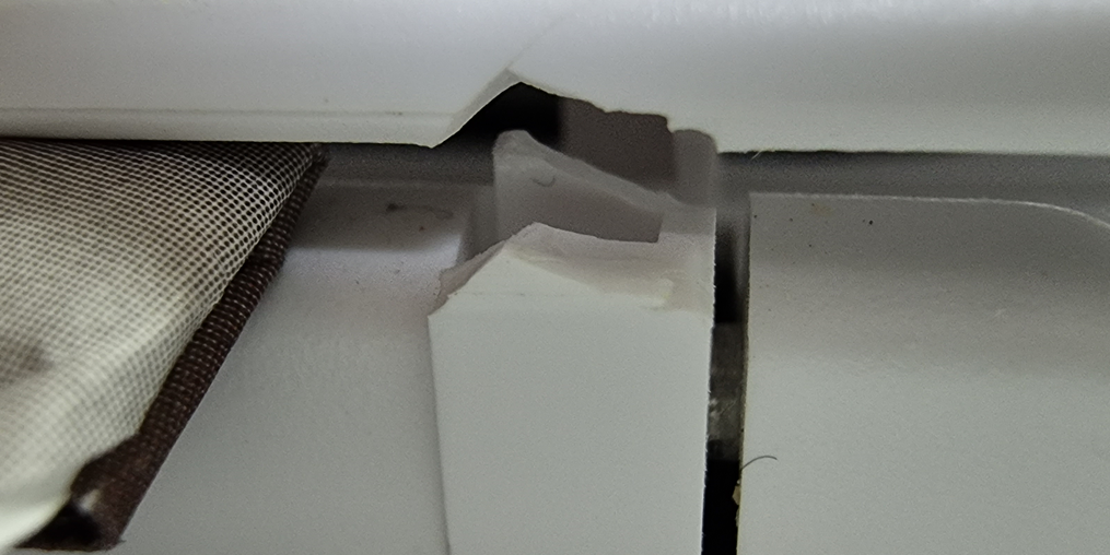 외관 상 뚜껑이 열릴 때 힘을 받는 지지대 두 곳 중 한 곳이 부러져 있었습니다.