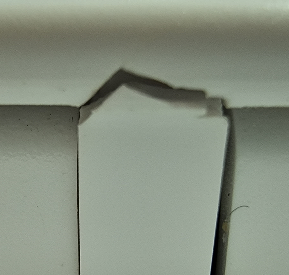 얼마나 부러졌는지 보기 위해 종이를 접어 틈새를 벌려보았습니다.