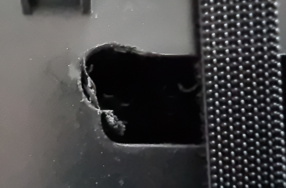 그러던 중 두께를 줄이기 위해 각도를 조절하는 다리를 제거하다가(사진상 아래 빨간 네모) 선정리를 위한 플라스틱 부분(사진 위의 작은 네모 부분)의 넓이가 20센티미터에 근접할 것 같은 생각이 들었습니다. 약 1센티미터 정도 좁아 벽에 걸기 쉽지 않을 것 같습니다.