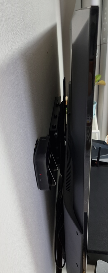 그리고 완전히 밀착시켜봅니다. TV에 닿지도 않고 설치는 성공적입니다.