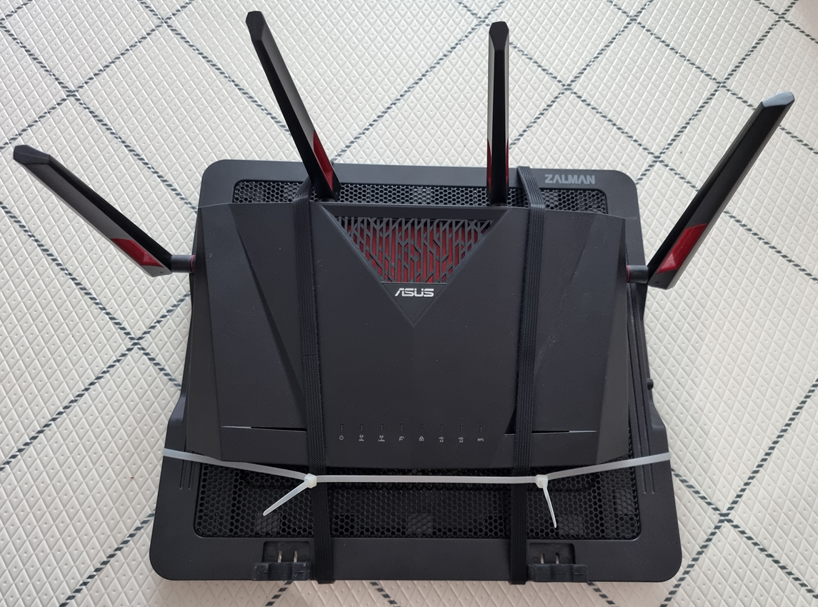 공유기도 별도의 훼손 없이 쿨러의 중앙에 위치하고 흘러내리지 않도록 케이블 타이로 고정을 시킵니다.