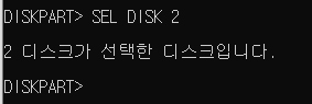'SEL DISK 숫자(디스크 번호)'를 입력합니다. 제일 처음에 말씀드렸던 디스크 관리에서 보았던 번호를 입력해도 됩니다.