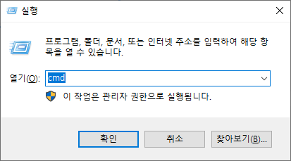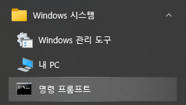 윈도우+R(실행) - CMD 또는 CMD검색 또는 시작의 프로그램 목록에서 '명령 프롬프트'를 찾아 실행합니다.