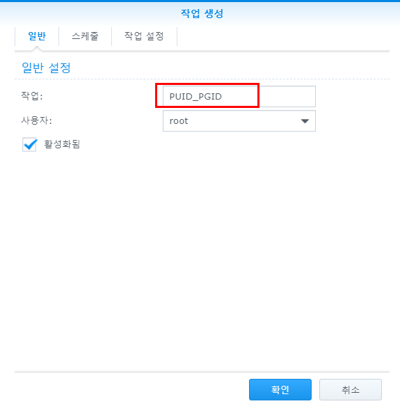 내 나스의 UID(유저 아이디), GID(그룹 아이디)를 작업 스케줄러를 이용하여 스크립트를 실행하고