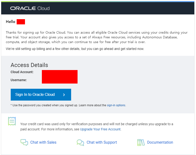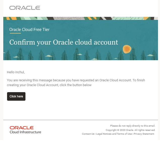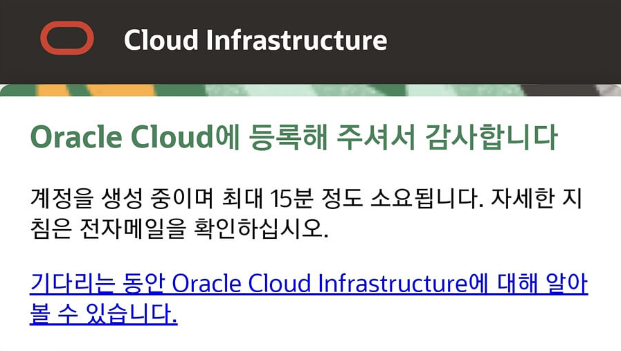 오라클 클라우드의 가입은 모든 정보를 입력하고 몇 가지의 인증과정을 거쳐 이루어지며 거의 마지막 단계에 가서
