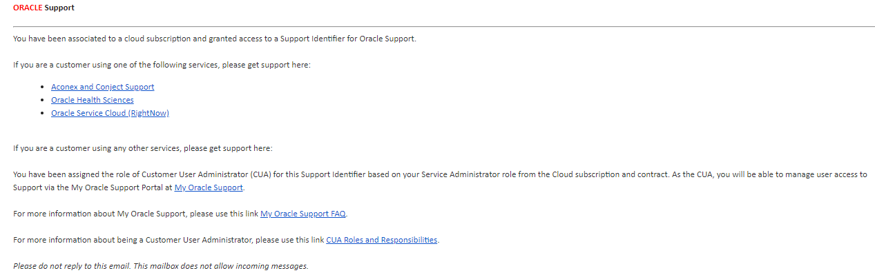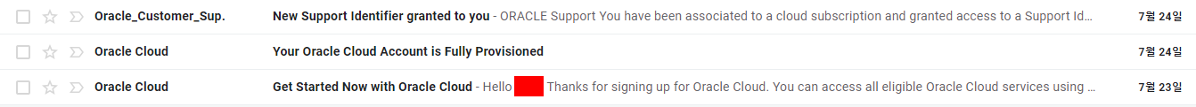 오라클에서 보낸 전자메일이 보입니다.