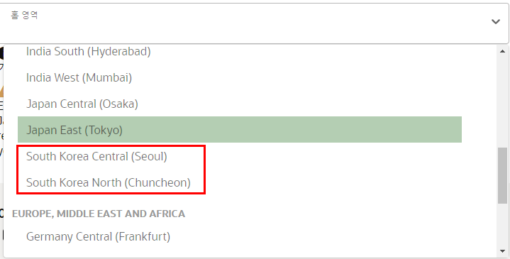 한국은 서울과 춘천 두 곳이 있고 여러 나라의 여러 도시를 선택할 수 있습니다.