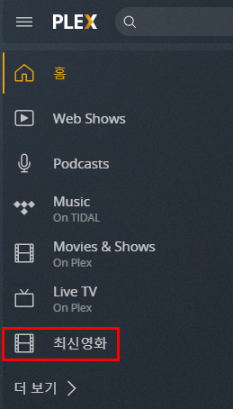 가입이 완료되었다면 좌측 상단에 PLEX나 홈 모양 버튼을 눌러 초기화면으로 돌아갑니다.