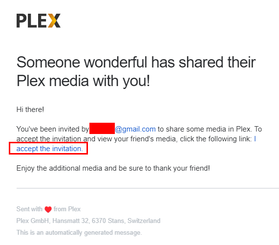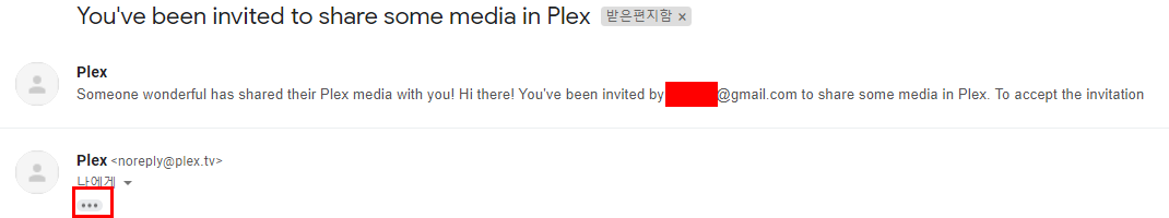 어떤 이메일 주소를 가진 PLEX서버에서 초대했는지 보입니다.