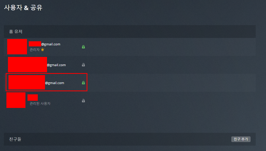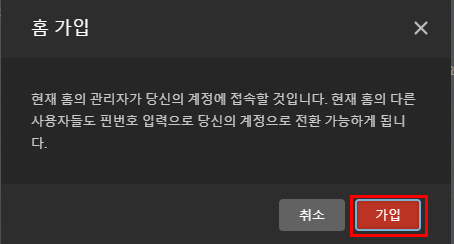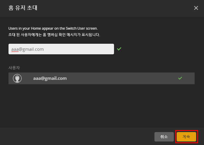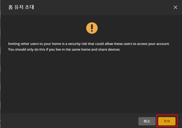 내부 사용자 추가를 하게 되면 내 계정의 비밀번호를 알려줘야 하기 때문에 홈 유저 초대를 하는 것이 좋다고 생각했습니다.