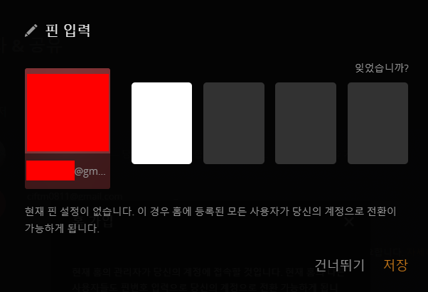 회색으로 자물쇠가 열려있는 이미지는 핀번호가 설정되지 않은 계정이고 아무나 접근이 가능합니다.