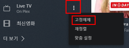 최신영화라는 라이브러리가 고정이 되었지만 시청하지 않는 불필요한 라이브러리들이 있습니다.