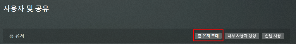 오른편 '사용자 및 공유' 화면에서 '홈 유저 초대'를 눌러줍니다.