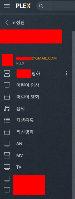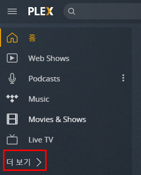 초기화면을 보면 PLEX에서 제공하는 기본 라이브러리만 보이고 초대한 사람의 라이브러리가 보이지 않기 때문에