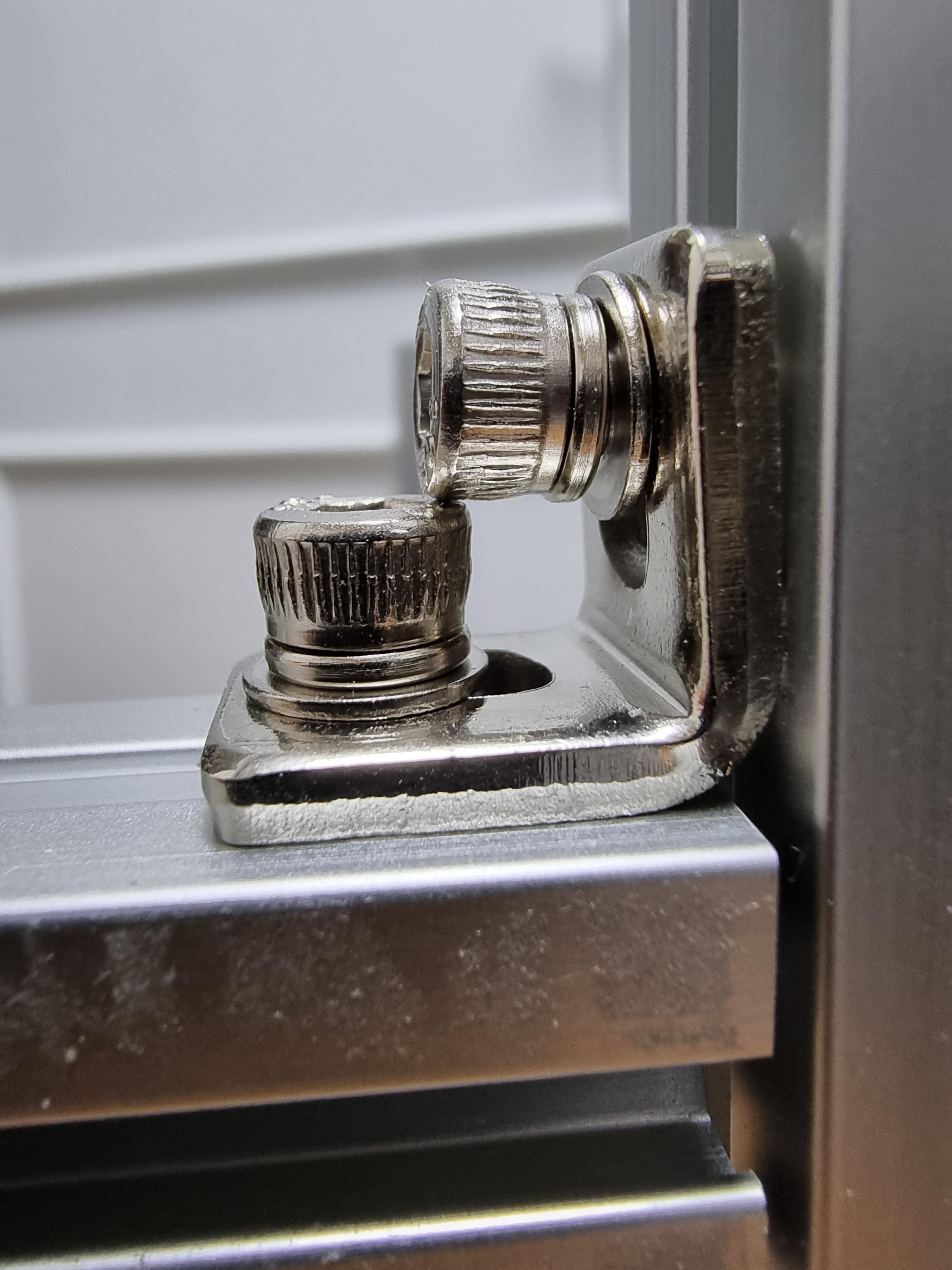 3번은 브래킷입니다. 계산착오로 셈스 레인지 볼트라는 머리가 큰 볼트를 주문했는데요 20x20 프로파일에 쓰이는 브래킷의 거리가 너무 짧아 머리가 서로 닿게 되었습니다.